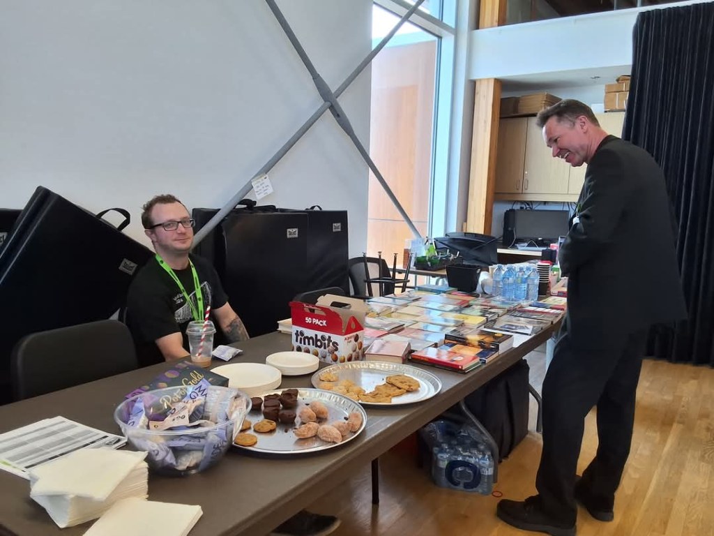 Upon check-in at the table, you’ll be able to sign up for your shift. This shared model ensures everyone has the chance to display their work and connect with readers while keeping things running smoothly.